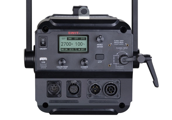FL-C400D supports external electro-motor installed to adjust the spot/flood angle by Menu knob or by DMX control. The optional E-motor is easily user installed (Part number LA-M50).