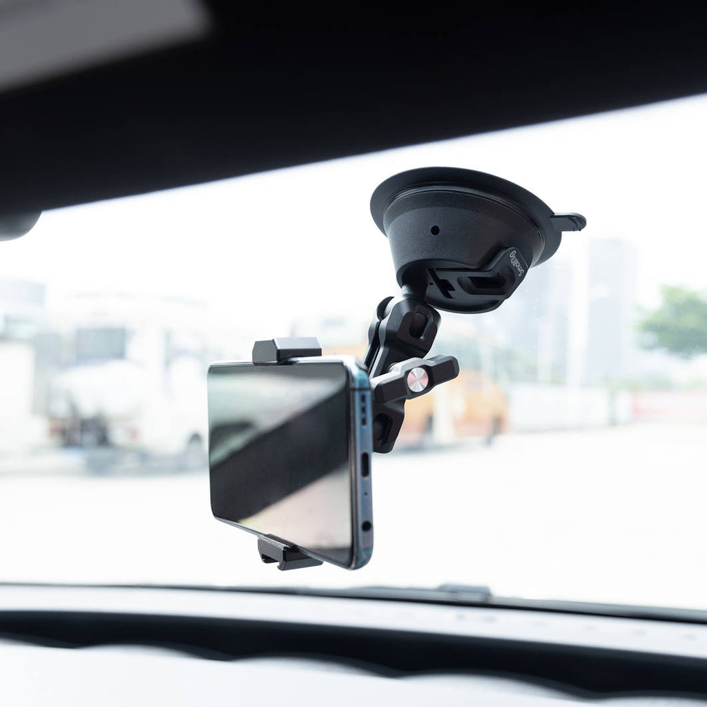 For sikker, stabil og langvarig støtte leveres holderen med en patenteret dobbeltlags sugekop, som hurtigt fjernes og installeres via designet med et tryk på en knap.