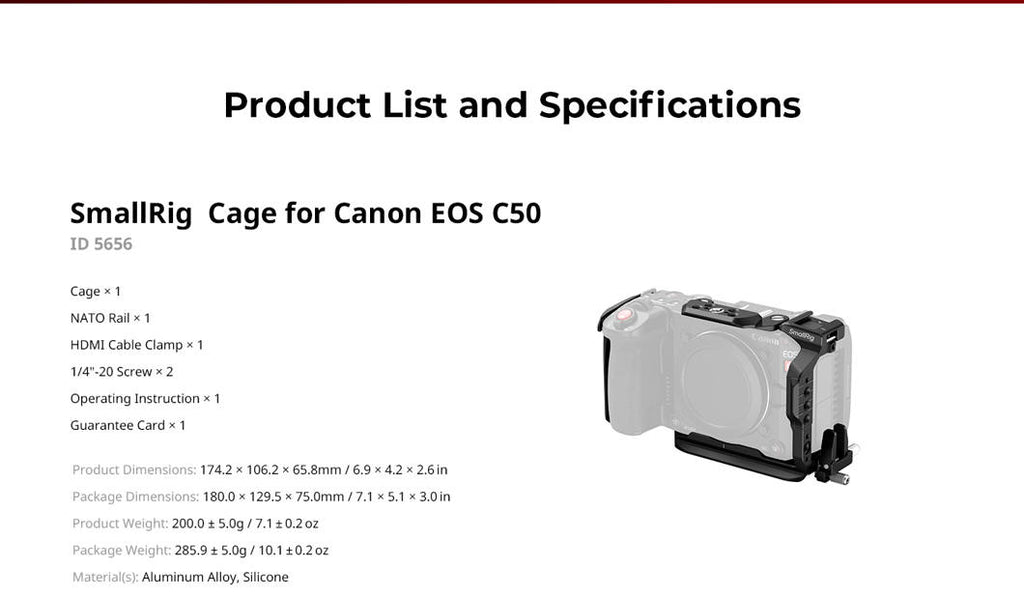 SMALLRIG 5658 CAGE KIT FOR CANON EOS C50 ADVANCED EDITION