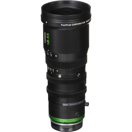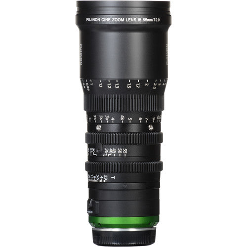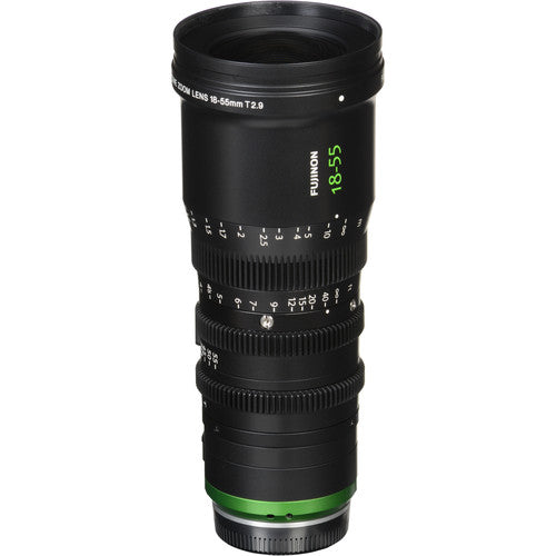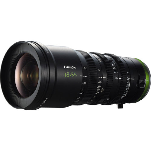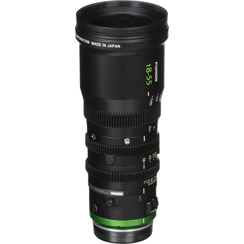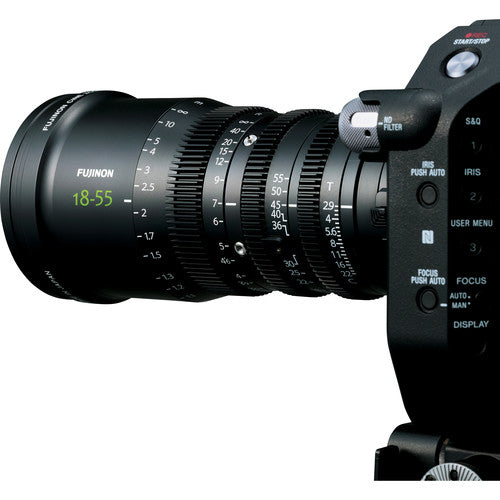 TheFujinon MK18-55mm T2.9 Lens in E Mountis a lightweight cine-style zoom lens for E-mount cameras with a Super 35mm-sized sensor. It features a mechanical design with three independent lens control rings: focus, iris, and zoom.